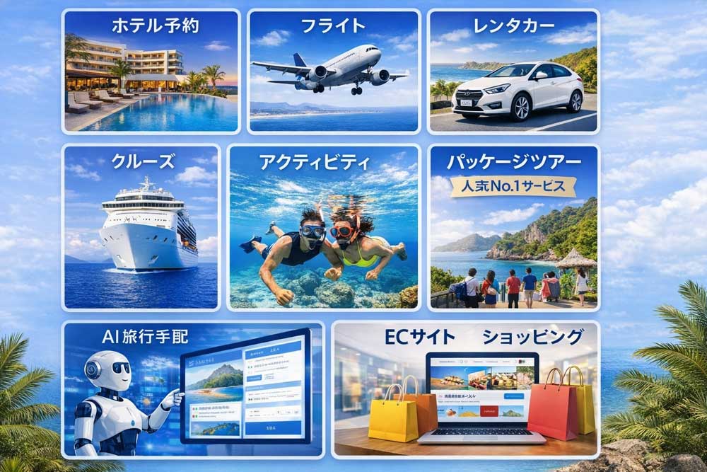 旅行に関わる複数のサービスをまとめて提供しています。
