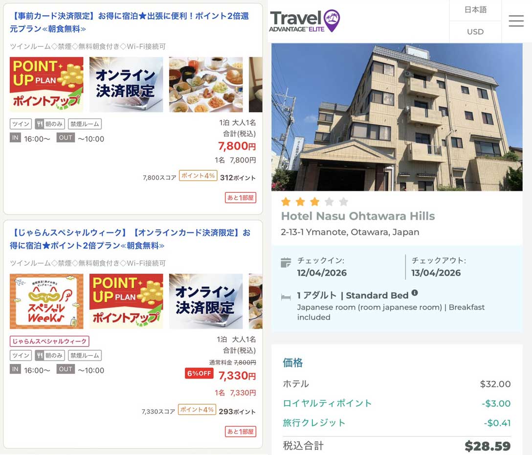 - ポイントを使うことで大幅割引が可能