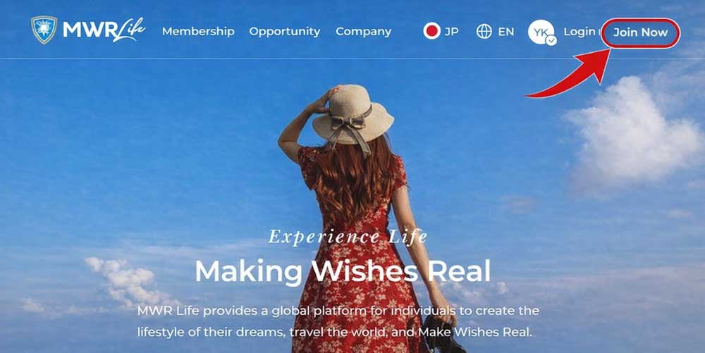 ①MWR Life(ムアライフ)ページに行き、右上の「Join Now」をクリックします。